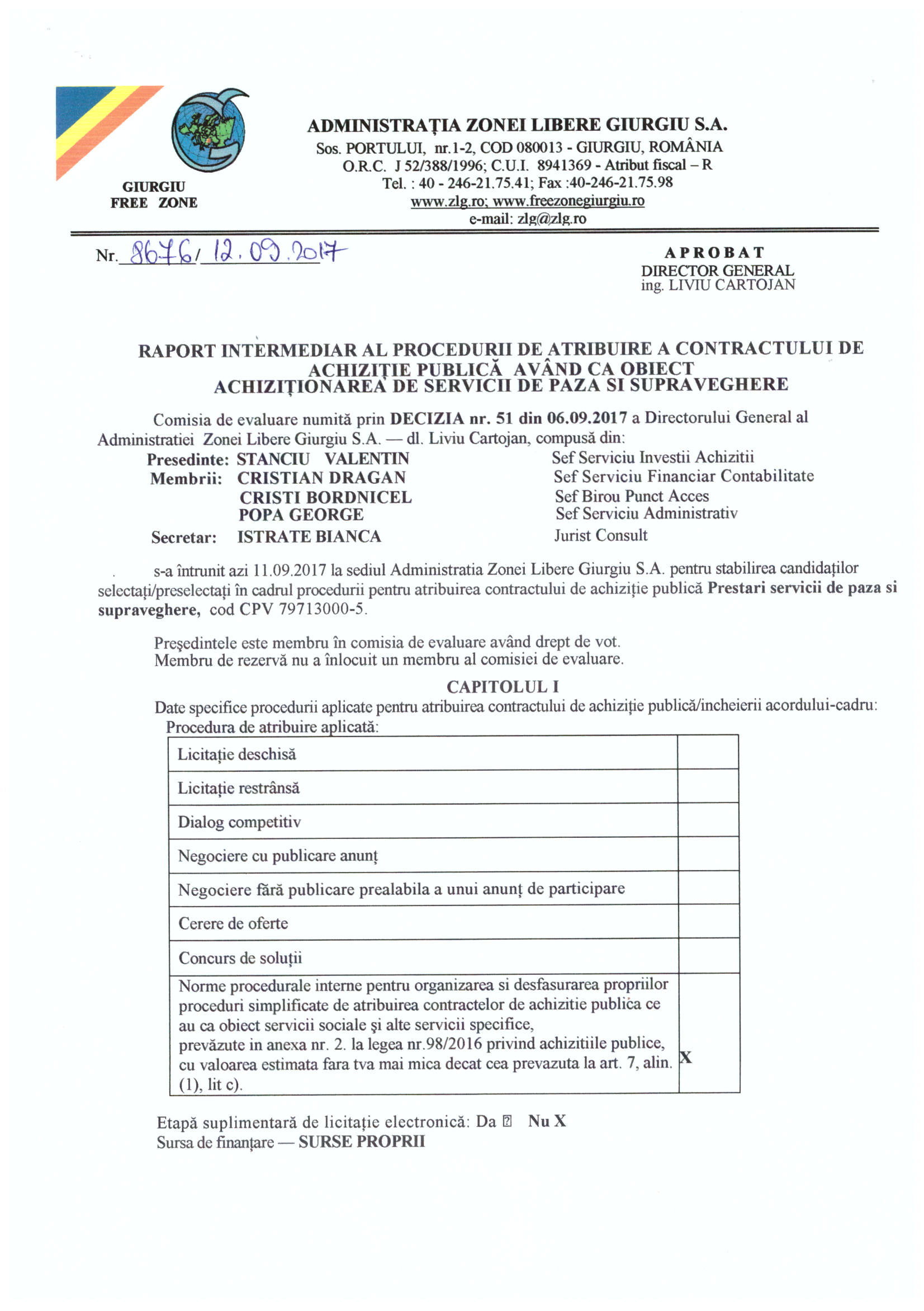 Index of /downloads/doc_Download/Licitatii 2017/Licitatie servicii de paza/Raport comisie de evaluare